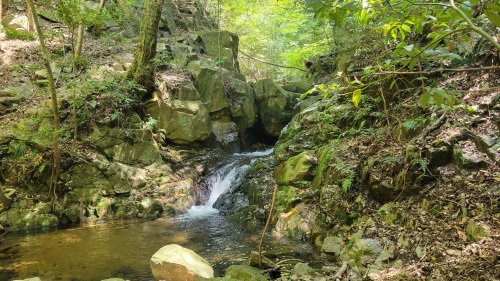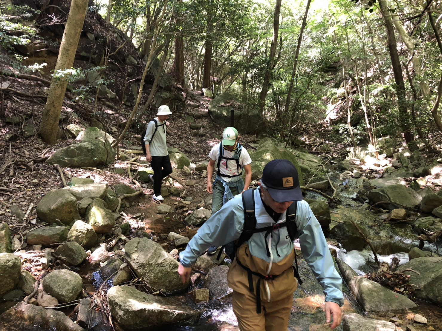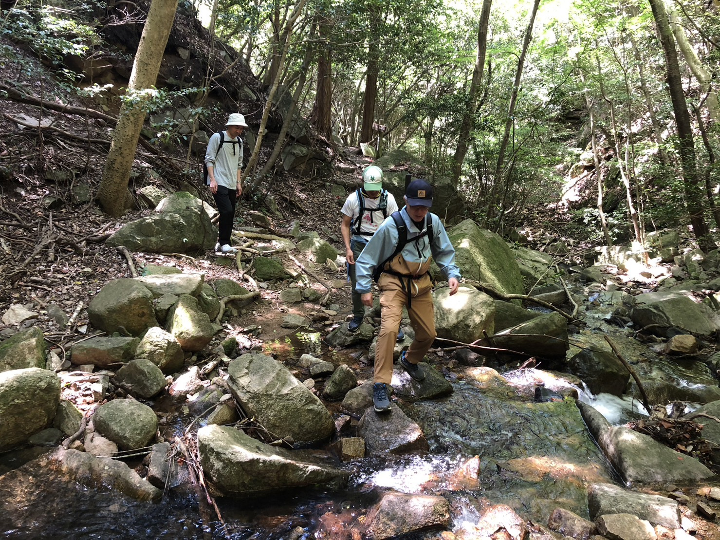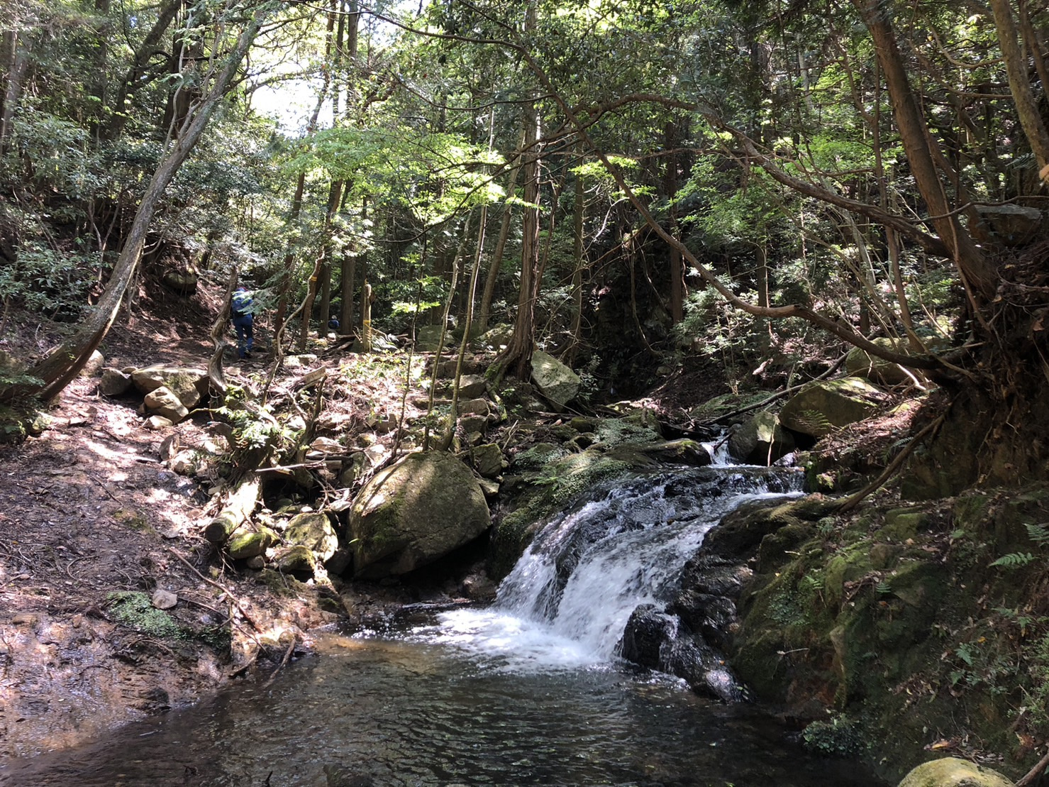 沢渡りは滑るのを恐れながら渡り、何とか摩耶山